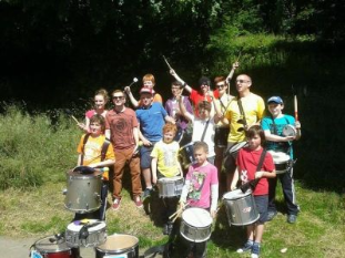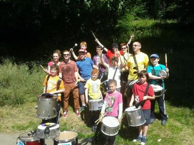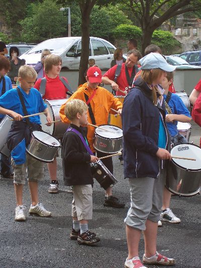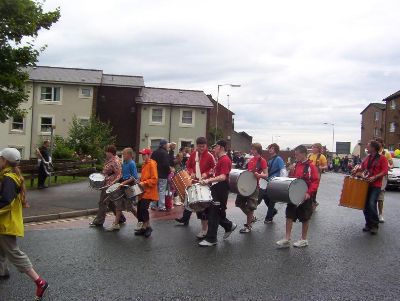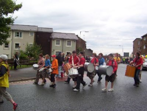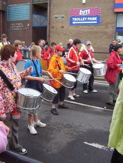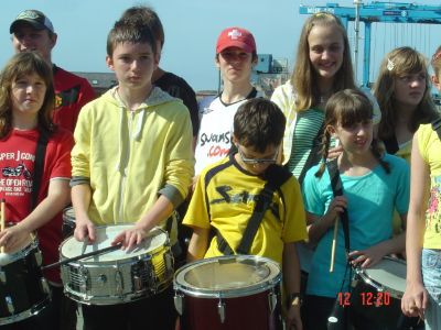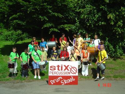 This was the carnival crew for 2009. 23 Drummers and two banner holders.