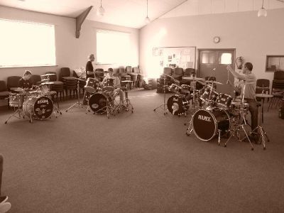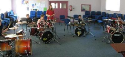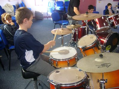 The drum kit work shops usually have 6 to 10 pupils using 4 or more drum kits and involve musicians attending to enable everyone to get some real playing experience. Ring Andy on 01946 693245 to book your spot.....